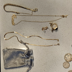 During the search, officers recovered jewelry, sentimental property, and multiple amounts of currency.