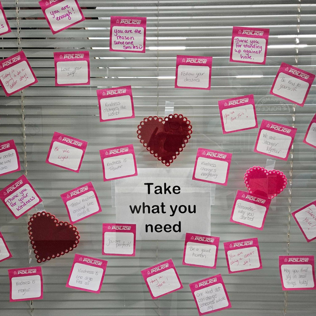 Want to get your class or community group involved? Request free pink Post-It notes by emailing publicinfo@wrps.on.ca or downloading a printable version, and help your group share positive, uplifting messages. Encourage everyone to write something kind, display their notes proudly, and spread the spirit of Pink Shirt Day. Don’t forget to snap a photo, tag us on social media, and use #PostPositive so we can help share your message of kindness with the community.